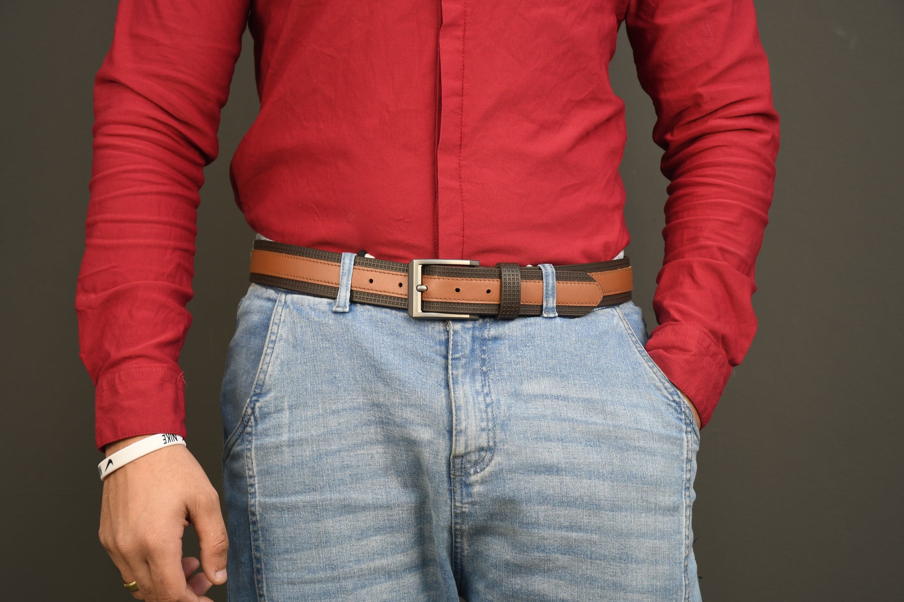 Premium Hand Made Genuine Leather Dual-Tone Designer Belt