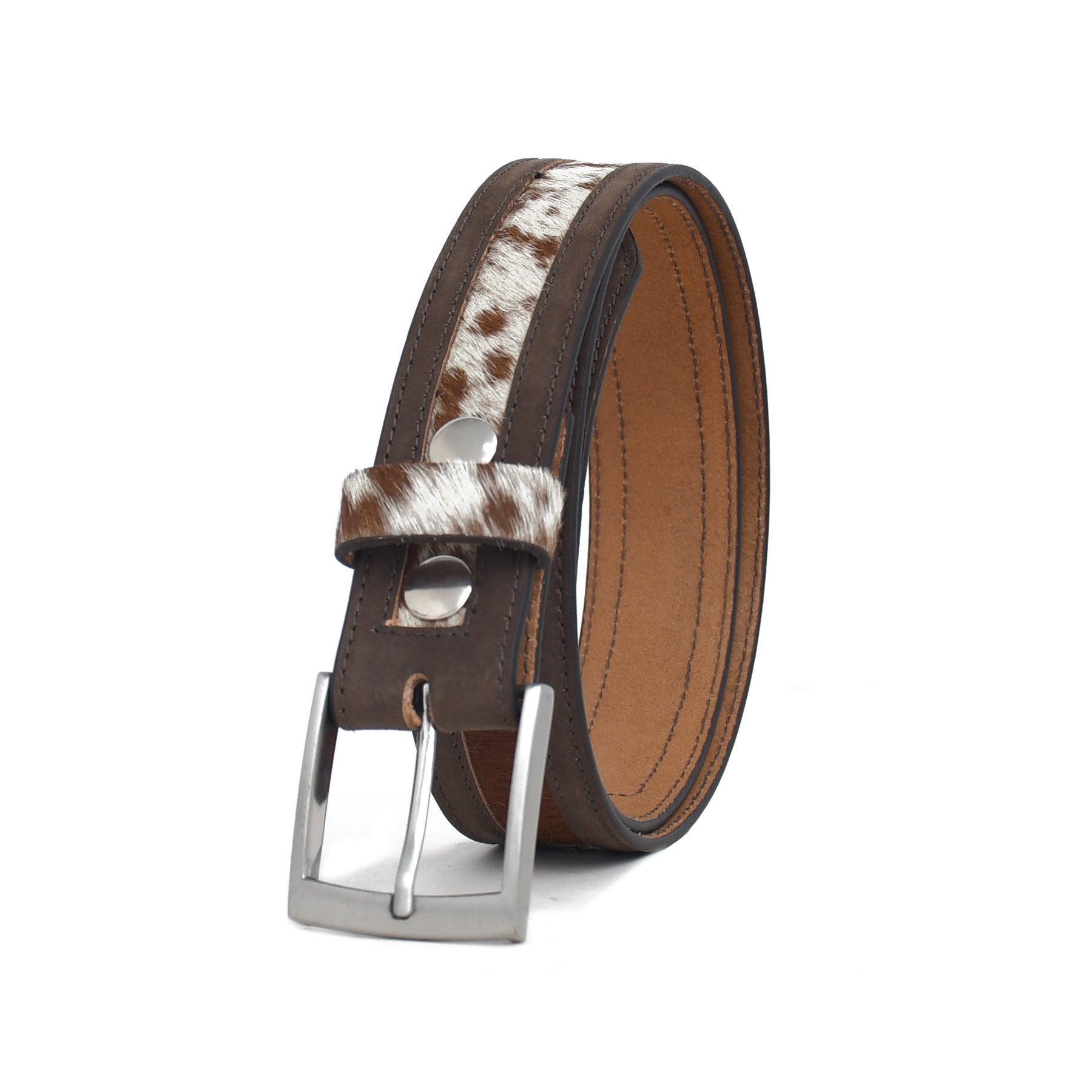 Crafted from premium handmade genuine leather cow hair, the belt highlights the authentic beauty of natural hide. The hair-on leather strip gives every belt a slightly different pattern, making each piece unique. The strong leather base provides durability while the smooth inner side ensures comfortable everyday wear.