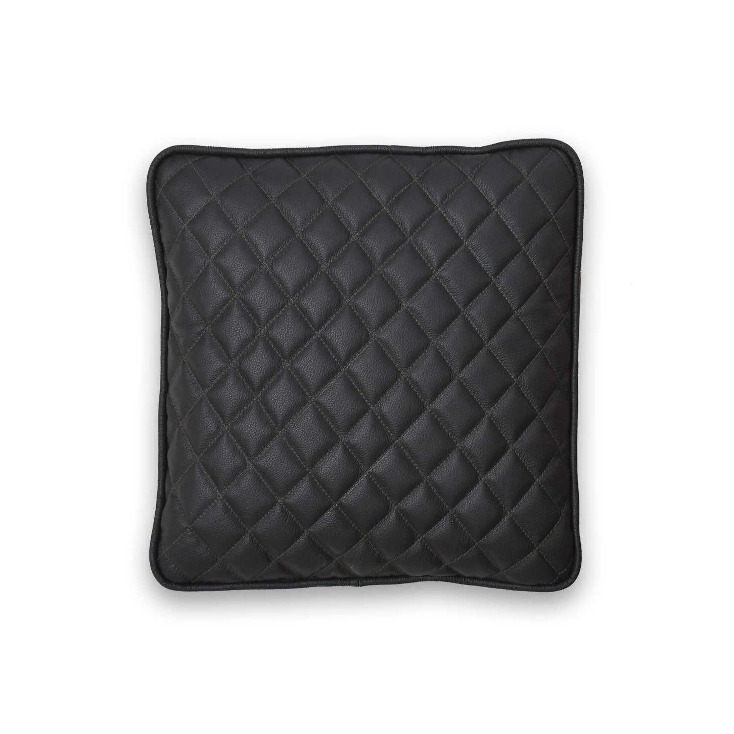 Black Quilted Leather Cushion | Diamond Stitch Premium