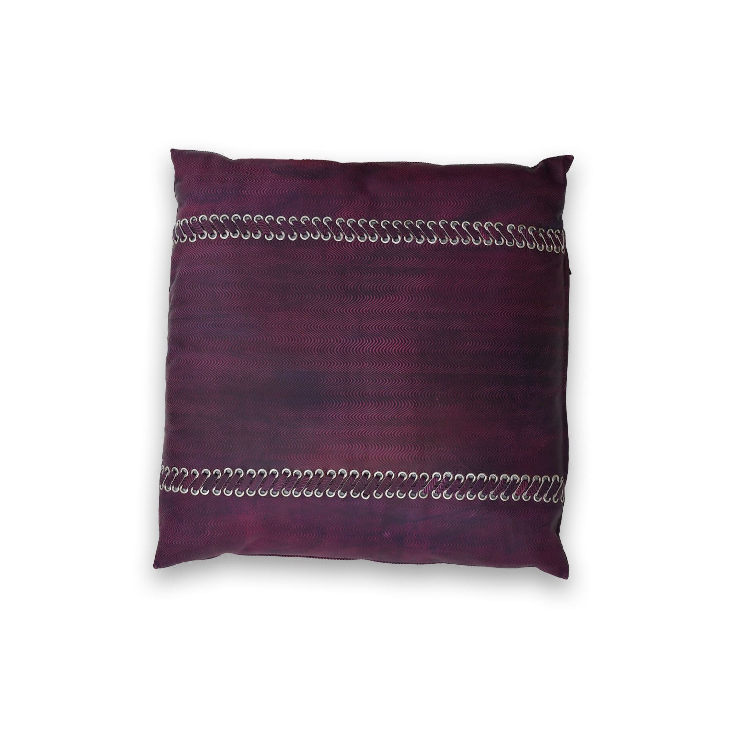 Premium & Genuine Leather Cushion – Burgundy Wave Texture with Hand-Laced Detailing