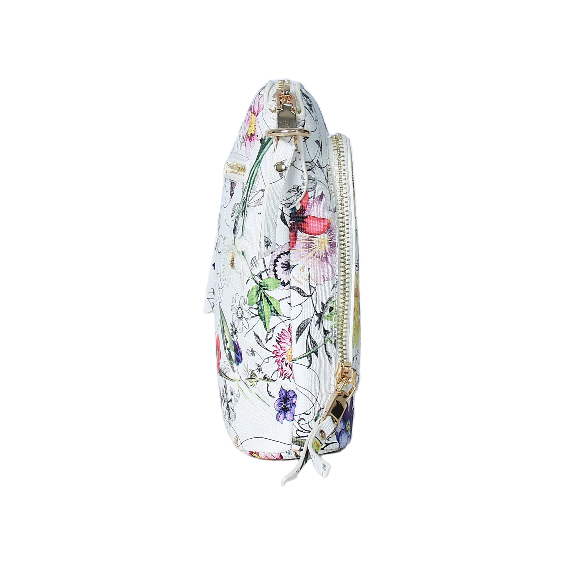Floral-patterned crossbody bag on a white background