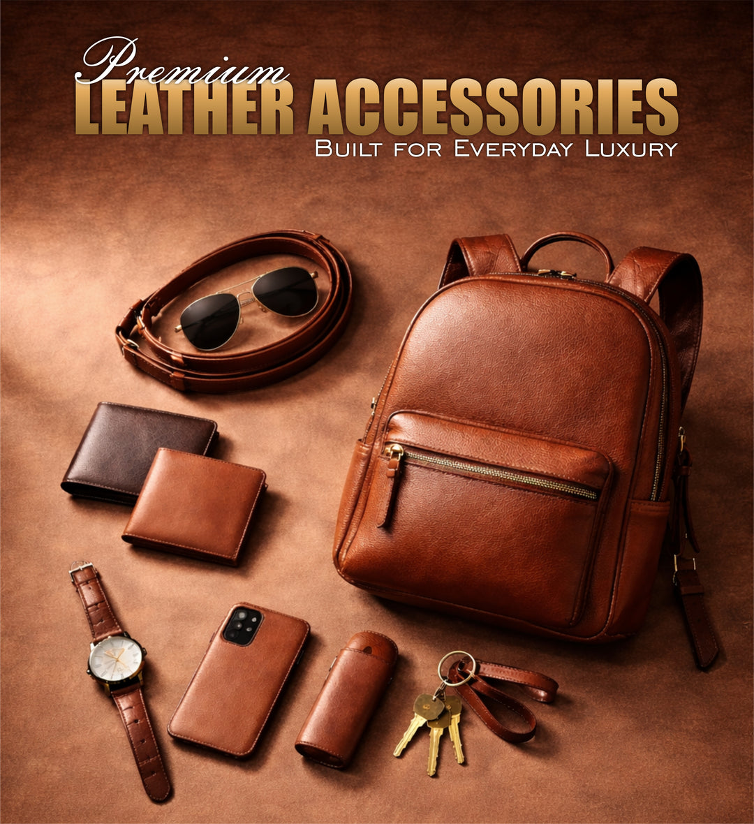 Premium leather essentials crafted with precision and built for everyday elegance. Each piece reflects durability, style, and timeless quality.