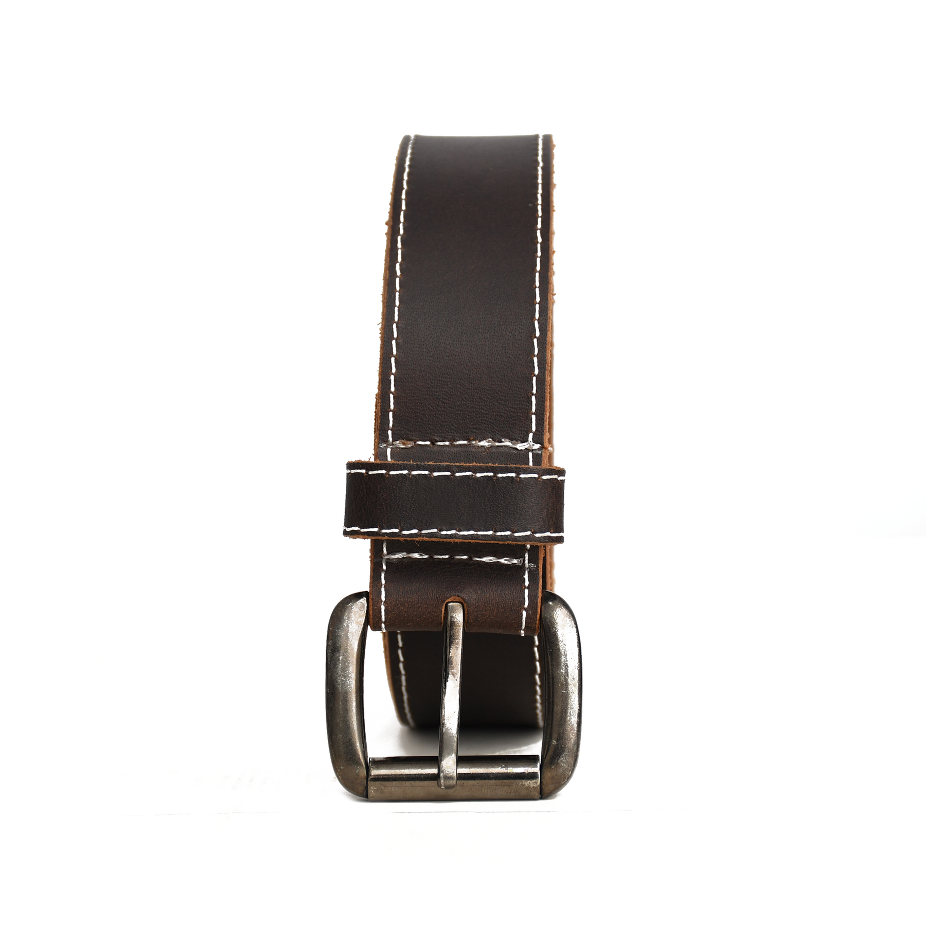 Luxury Handmade Genuine Leather Belt – Dark Brown Contrast Stitch